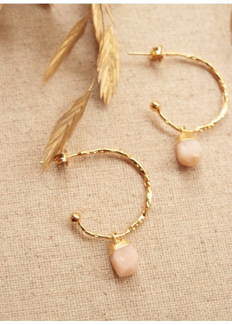 Boucles d'oreilles SIRJane demi-créoles martelées, ornées d'opales roses