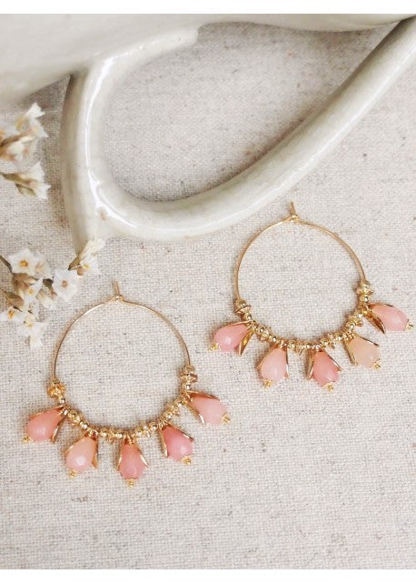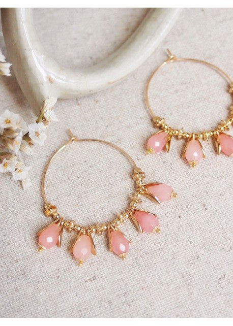 Boucles d'oreilles SIRJane créoles ornées de jades roses